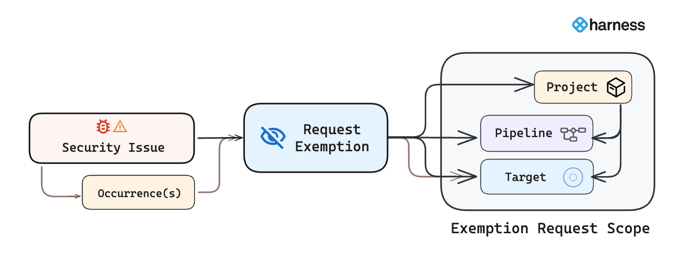 Issue exemptions help unblock pipelines by allowing security teams to temporarily bypass specific security issues that would otherwise fail the build. To understand how exemptions fit into your security workflow, refer to the issue exemptions workflow.