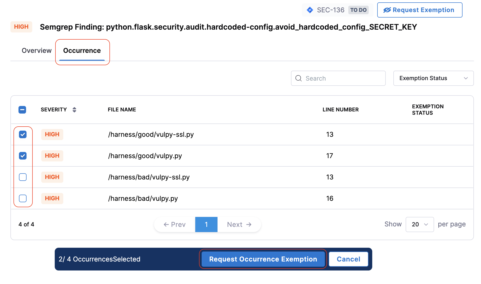 Create Exemption Request for Occurrences within Issue