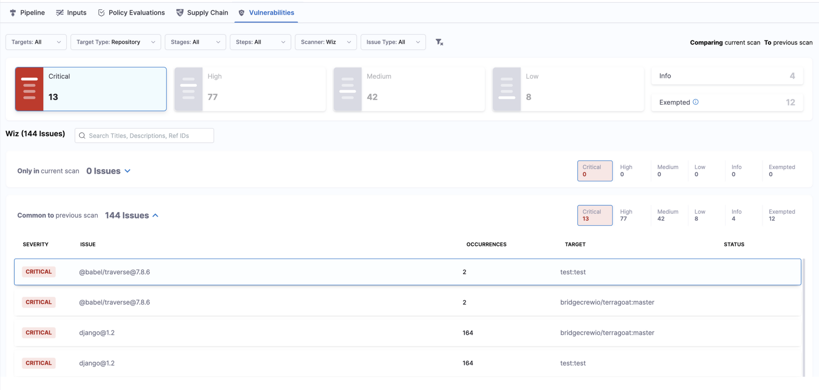 - Target Type: Filter by target type (e.g., repository, container, etc.).