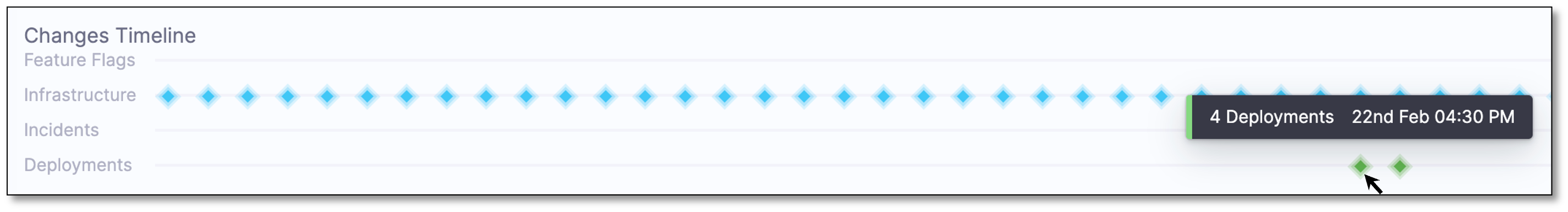 The Changes dashboard helps you understand when the change occurred, why it took place, and what impact it had on the health of the monitored service.