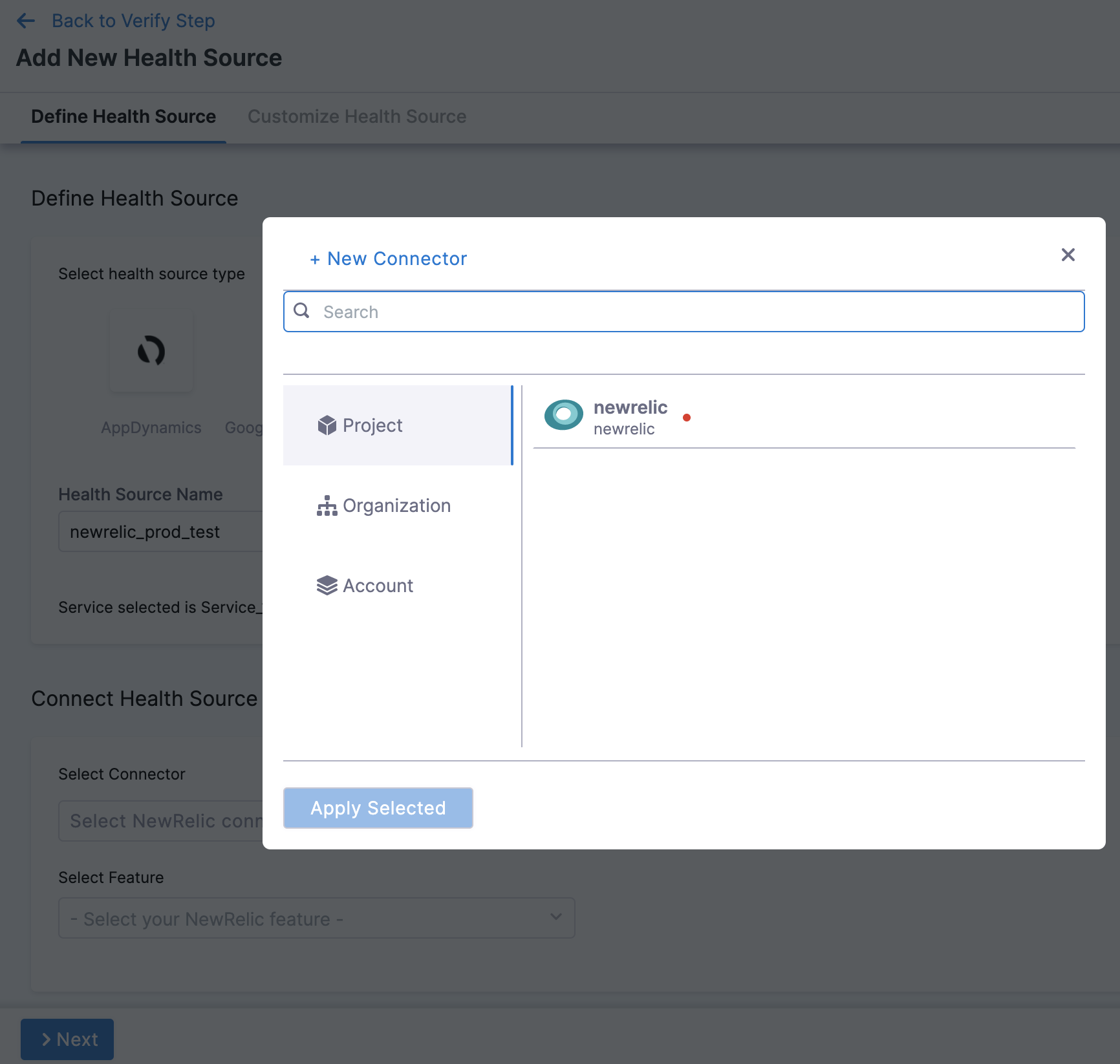 This topic describes how to set up New Relic as a health source in a monitored service.