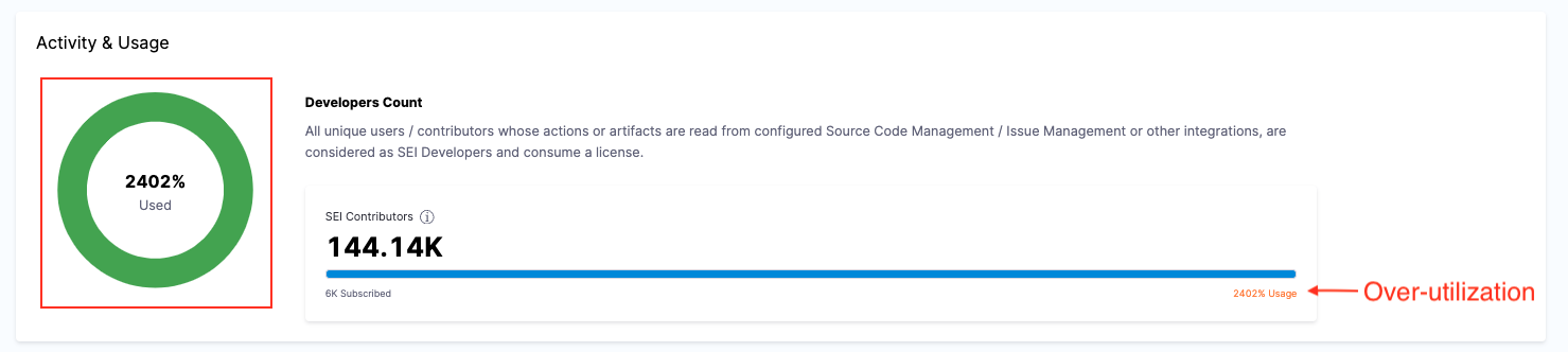 Your SEI subscription includes a specific number of Developer licenses, which track the number of Developers for which SEI is generating insights, and consuming a Developer license.