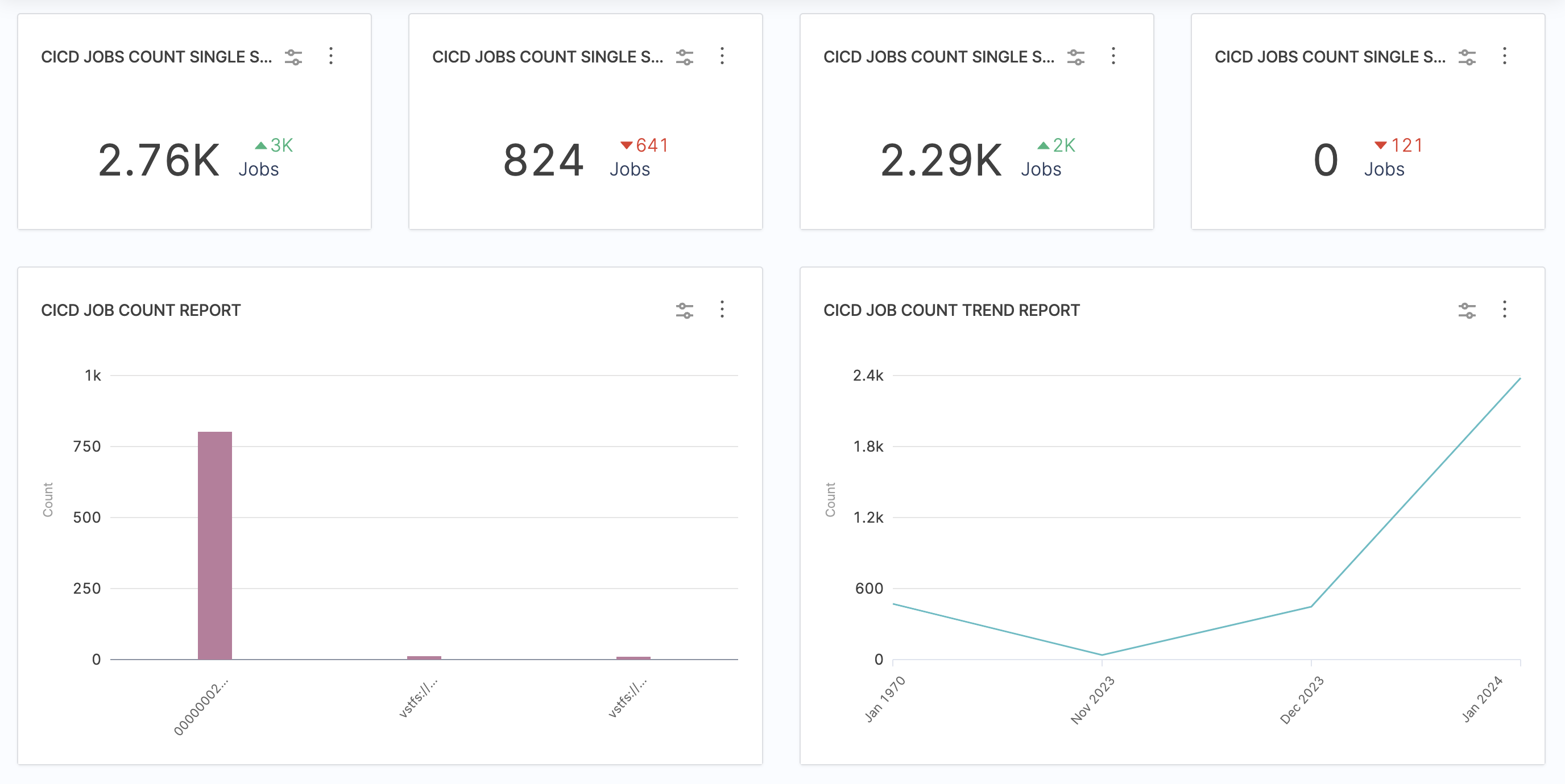Use the CI/CD Job Count reports to understand how often your CI/CD jobs run and whether they succeed or fail. You can analyze CI/CD job counts over a specific period, and shed light on the trends and patterns observed during that time.