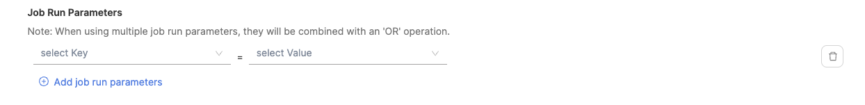 - Define job run parameters in key-value pairs. When using multiple job run parameters, they will be combined with an 'OR' operation. Similarly describe what defines a deployment causing failure based on the jobs completed or jobs started events in the selected time range.
