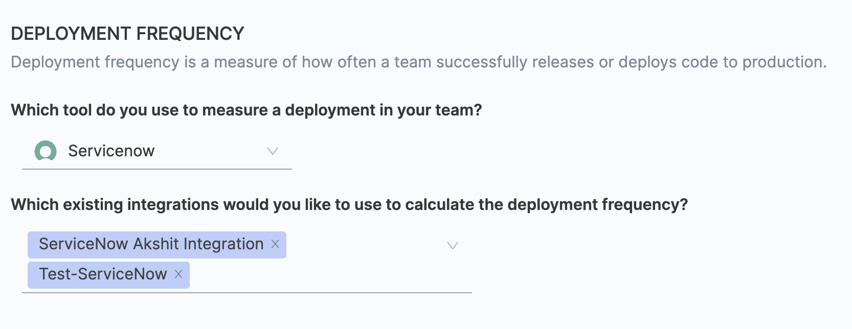 - Select the relevant ServiceNow integrations that you wish to use for calculating change failure rate.