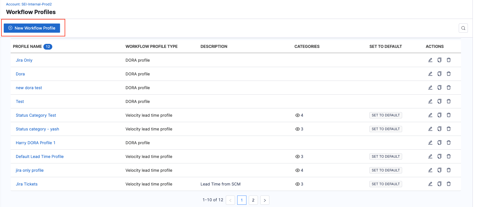 - To create a profile, select +New Workflow Profile. To edit a profile, select the profile's name in the profiles list.