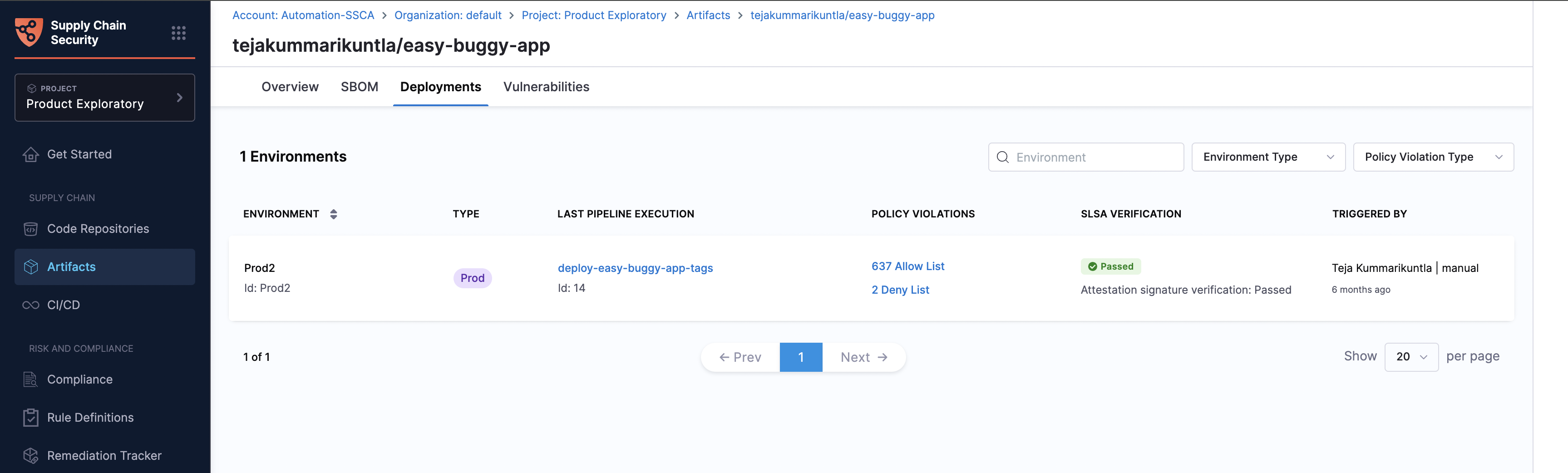 - SLSA Provenance: View the provenance and verification status of artifacts following the SLSA framework.