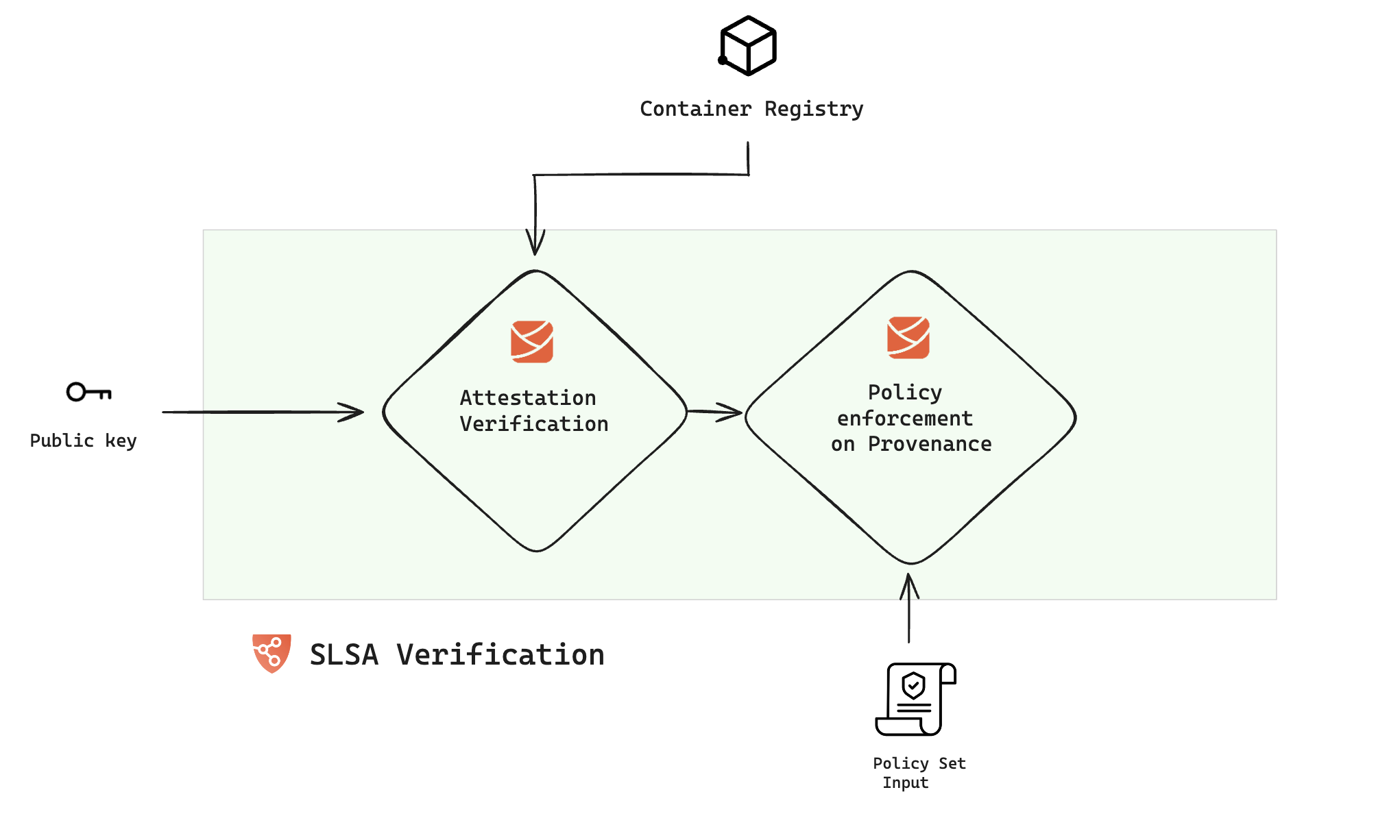 In this document, we'll explore how to verify SLSA Provenance attestation and enforce policies to guarantee the provenance contents remain unaltered. Unlike the setup for SLSA provenance generation, the verification process can be conducted in both the Build and Deploy stages of your pipeline. Here’s an overview of the procedure: