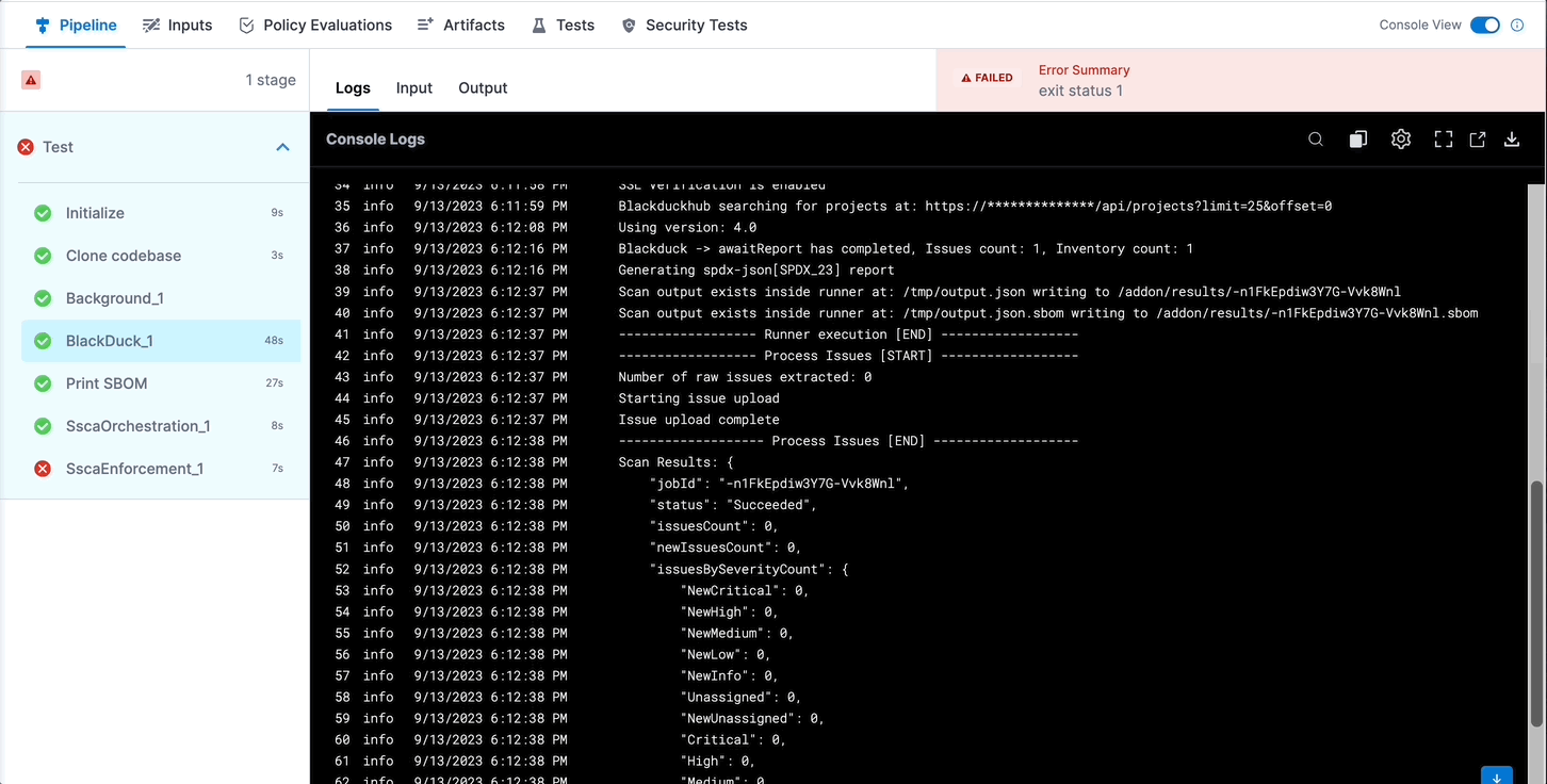 Add an SBOM Orchestration step and configure to ingest the SBOM.