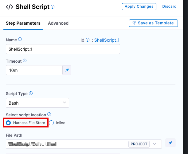 • Moving all scripts in any step into a Harness File Store Location. This should include scripts within templates that are being referred to within the pipeline.