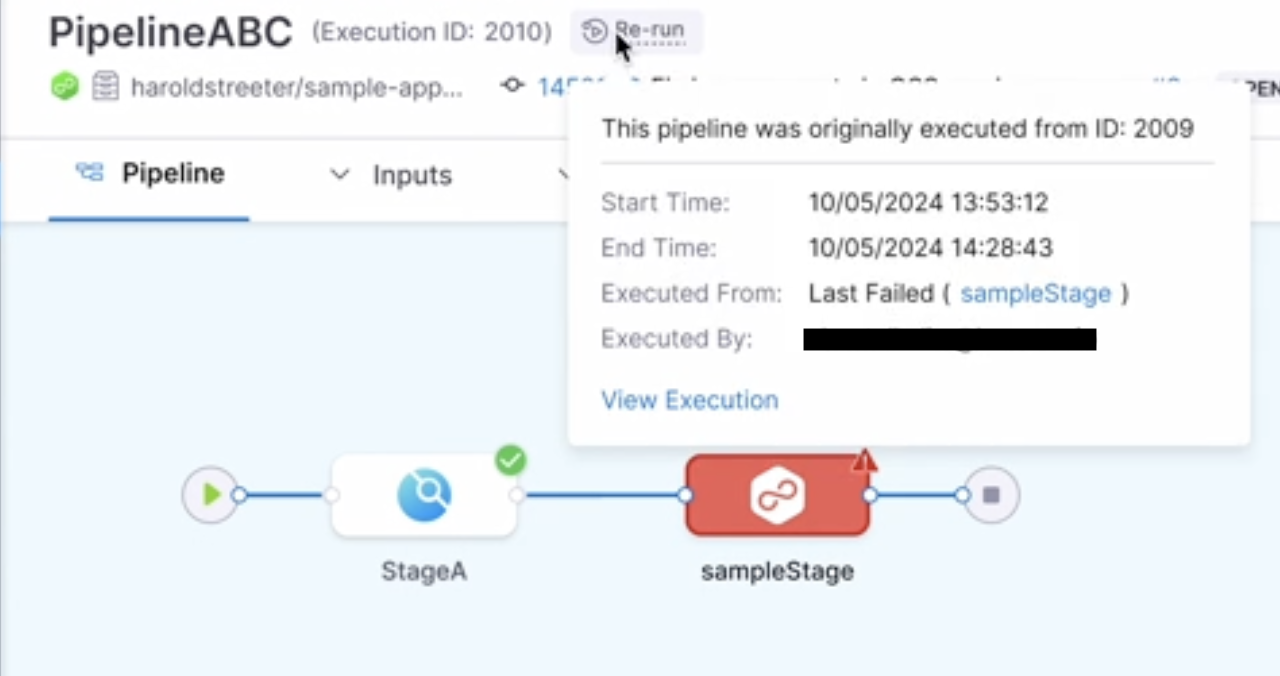 • Previously, when using Pipeline Chaining across different projects, the Execution History UI incorrectly displayed references for Service and Environment/Infrastructure in parent-child executions. These incorrect links made it difficult for users to trace pipeline execution details. This issue is resolved. (PIPE-27165, ZD-83767)