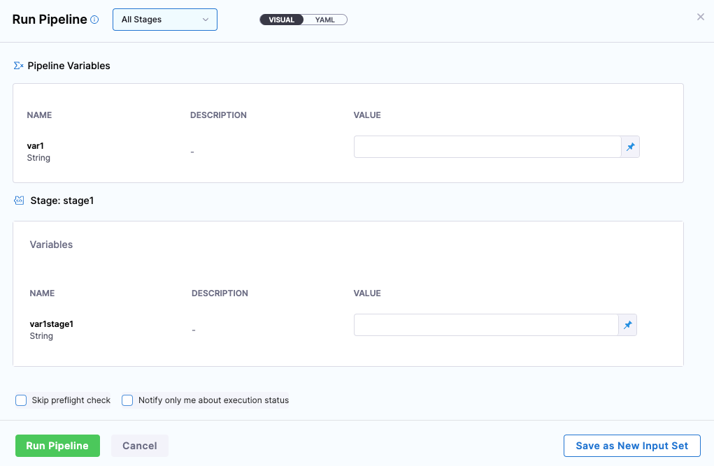 • Harness now preserves required and description metadata for Service and Environment variables in Pipelines and Templates, ensuring that any variable marked required: true or given a description in a Service/Environment retains those attributes when used as a runtime input in a Pipeline run form or Input Set. Currently, this feature is behind the feature flag PIPE_POPULATE_REQUIRED_AND_DESC_METADATA_INTO_REFERENCING_ENTITY. Contact Harness Support to enable the feature. (PIPE-13770, ZD-51392,55069,57312,62354,63051,63226,64057,65695,80110)